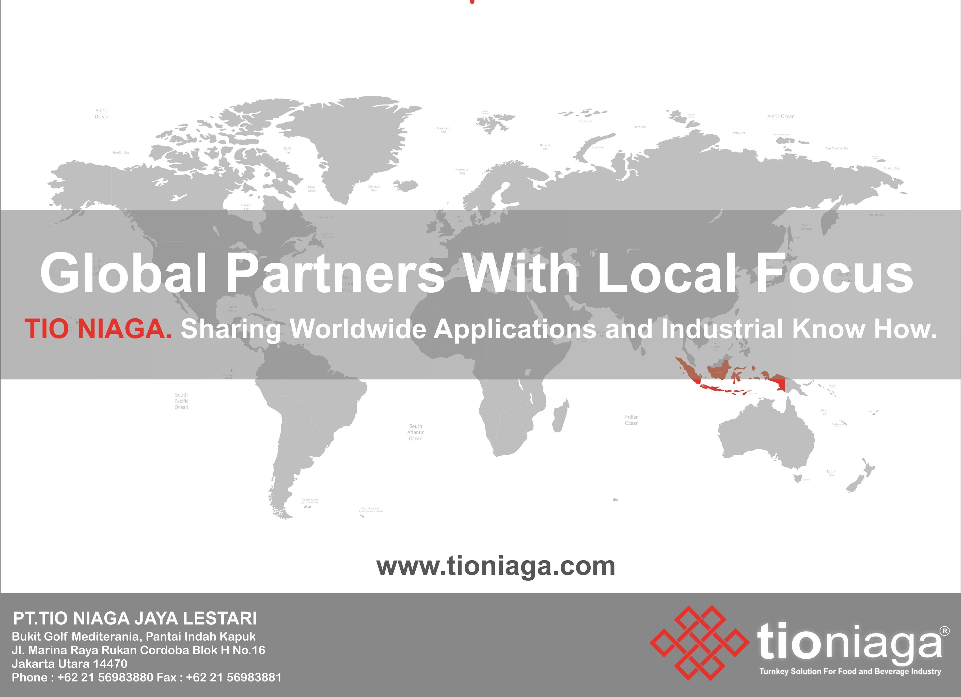 Founded in 2005, Tioniaga provide solutions and system integration that focuses on food and beverage industry in Indonesia. We have broad and close network to the food and beverage industry. To excel our service to our customer, we have the best partners and suppliers which offer you with the most efficient and reliable machines available in the industry.